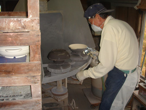 メタボに効果!磁性鍋で分子ガストロノミー調理の実践 磁性鍋の工場見学 磁性鍋は100%国産の製品で、○○県の工房で全て手作りで生産されています。 工房の様子 全てをひとつひとつ手作りで仕上げているので、お鍋ごとに若干形や色が異なる 場合があります。 鍋に磁性体を吹付けています。 石膏の鋳込み作業の様子 出来上がりのチェックと、最終の整形を行います。 < 磁性鍋の開発経緯 磁性鍋の種類 > <一覧へ戻る> 気になること、質問なんでも歓迎!お待ちしています! メールでのお問い合わせはこちらから