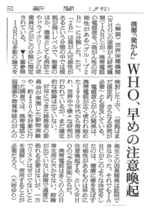 世界保健機関の(WHO)の国際がん研究機関(IARC)は携帯電話の電磁波(マイクロ