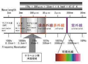 磁性体フェライトの強磁性共鳴の一種であるフェリ磁性共鳴の波長は遠赤外線領域になる。次の参照文献4によると
